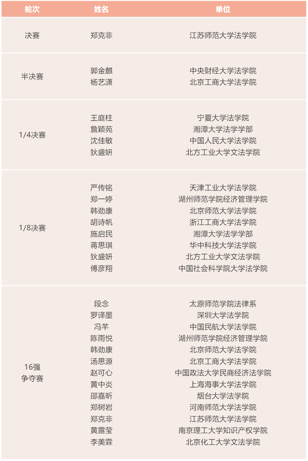 2024年6月16日,第四届“万慧达杯”中华商标协会全国高校知识产权(商标)热点问题辩论赛圆满落幕。根据《第四届“万慧达杯”中华商标协会全国高校知识产权(商标)热点问题辩论赛活动方案》,经组委会研究,现将获奖名单公布如下: