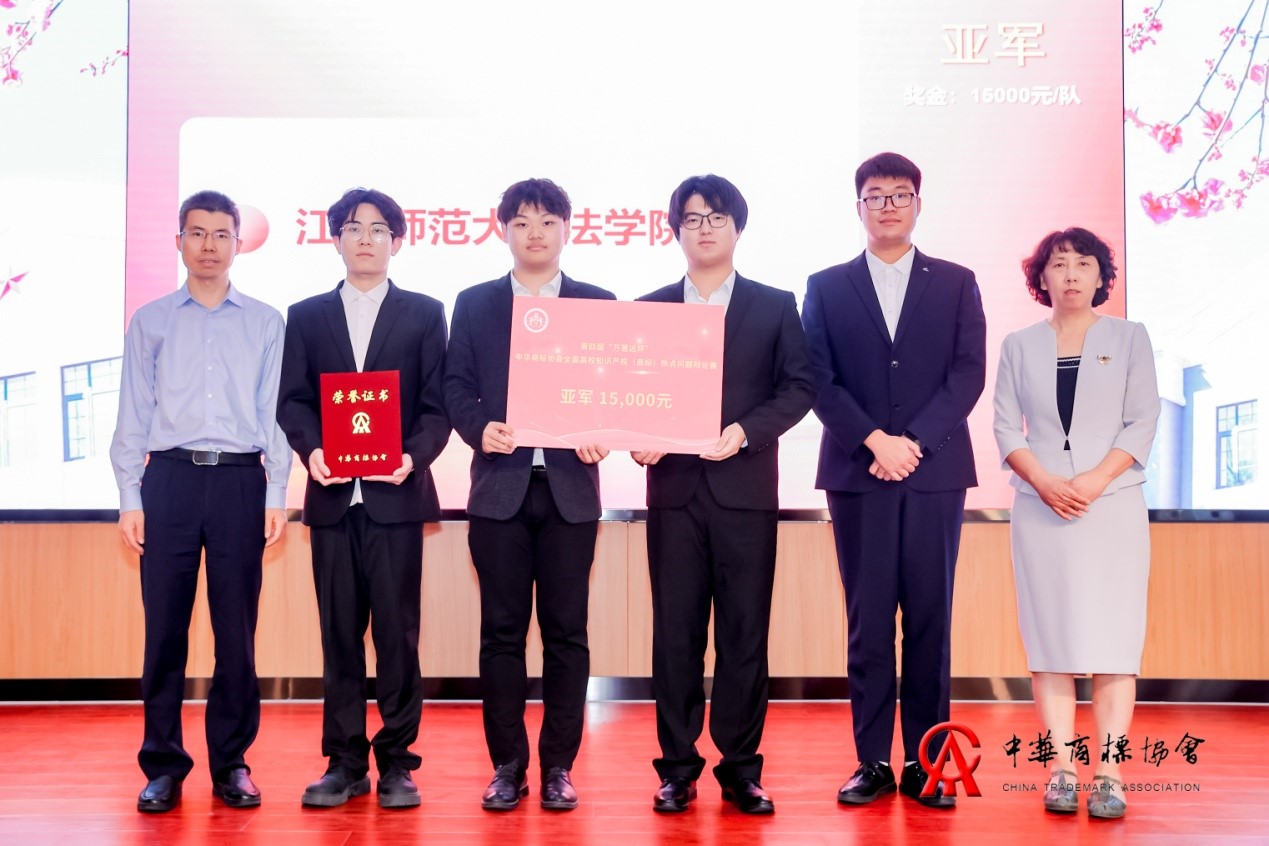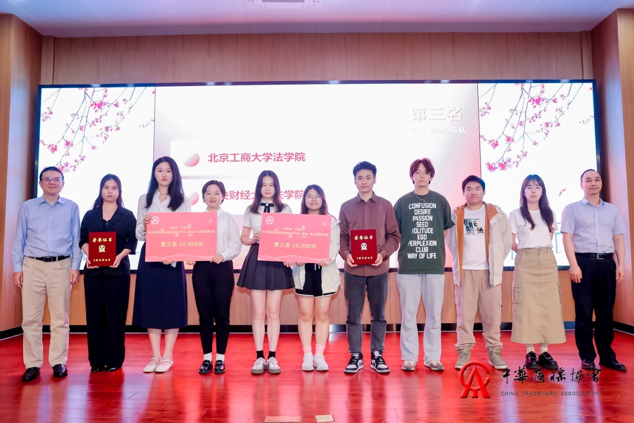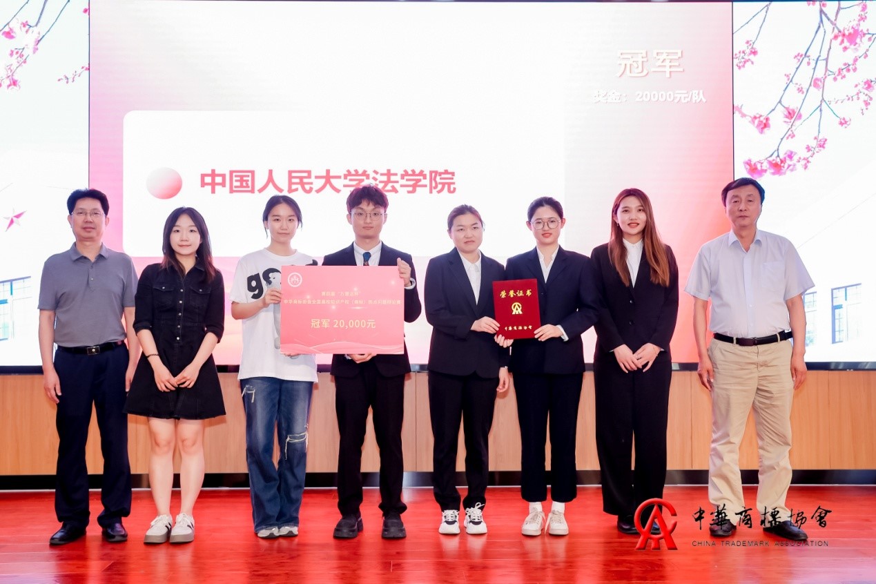 中华商标协会副会长兼秘书长吴东平(右一)为冠军中国人民大学法学院代表队颁奖