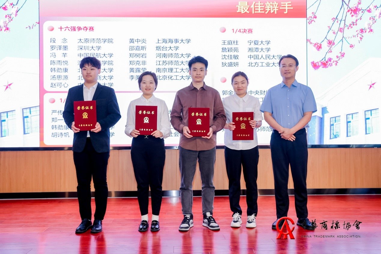 中华商标协会互联网商标品牌专业委员会执行主任杜剑波(右一)为最佳辩手代表颁奖