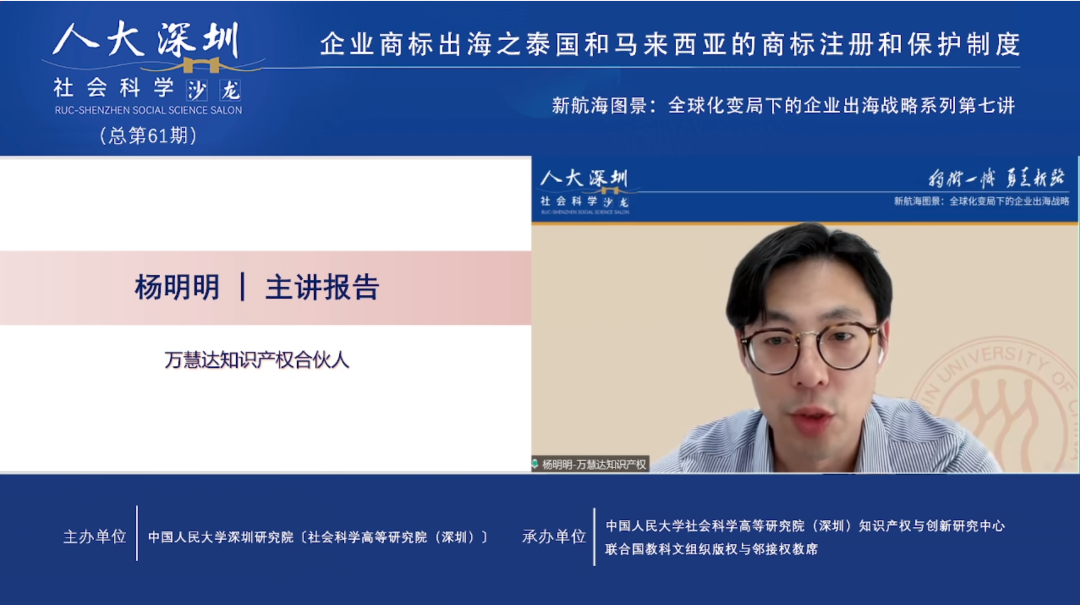万慧达知识产权合伙人杨明明作为主讲嘉宾分享“泰国和马来西亚的商标注册和保护制度”