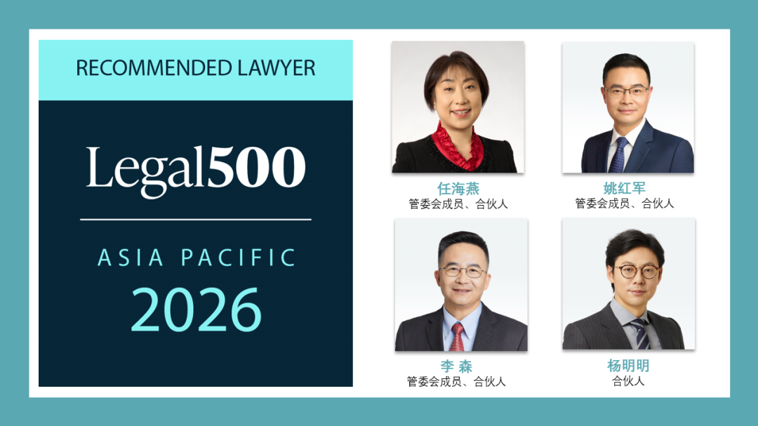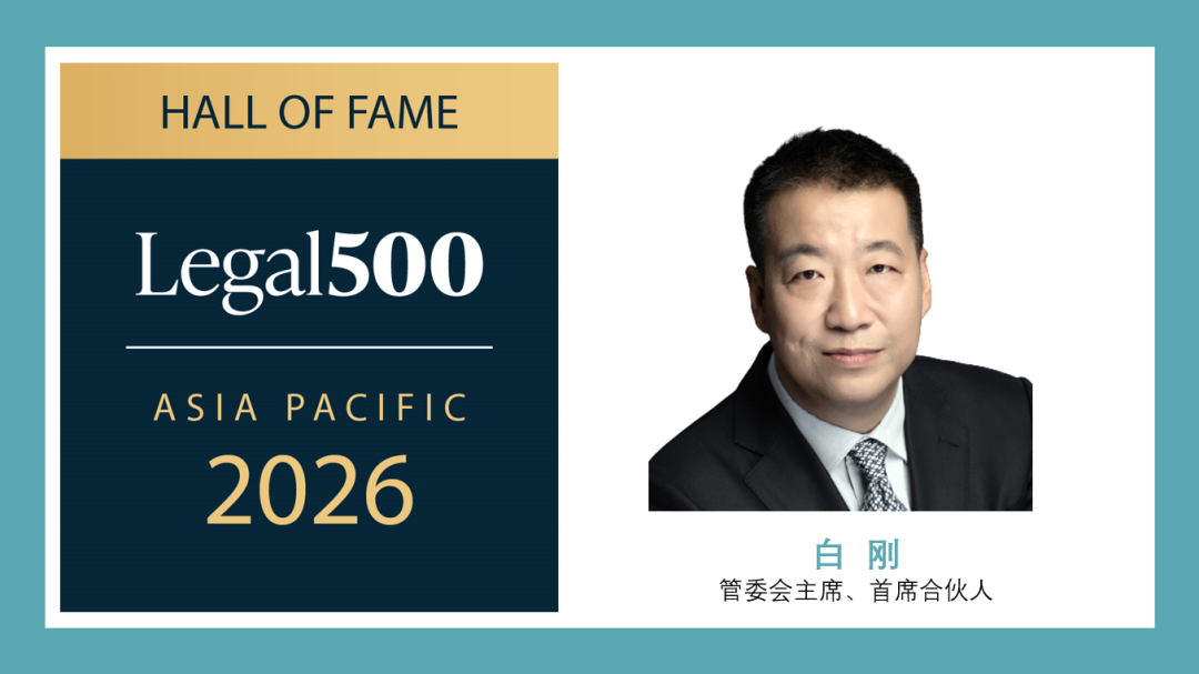 管委会主席、首席合伙人白刚先生再度入列 Legal500 名人堂(Hall of Fame)。管委会成员、合伙人任海燕女士、李森博士、姚红军律师,合伙人杨明明律师因在相关领域的出色表现得到关注及推荐。
