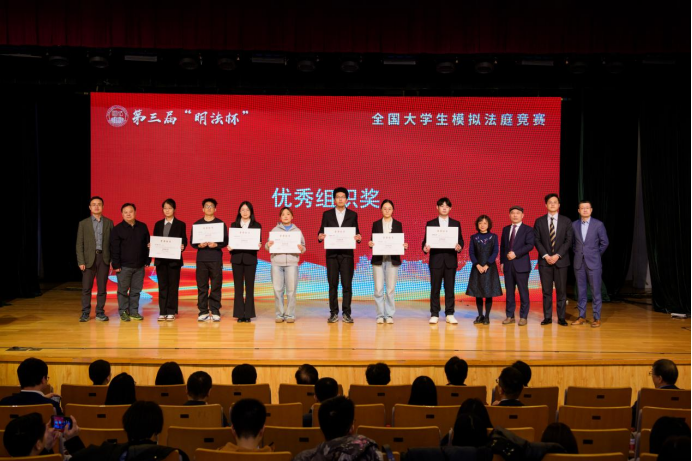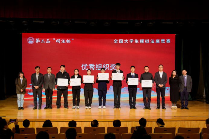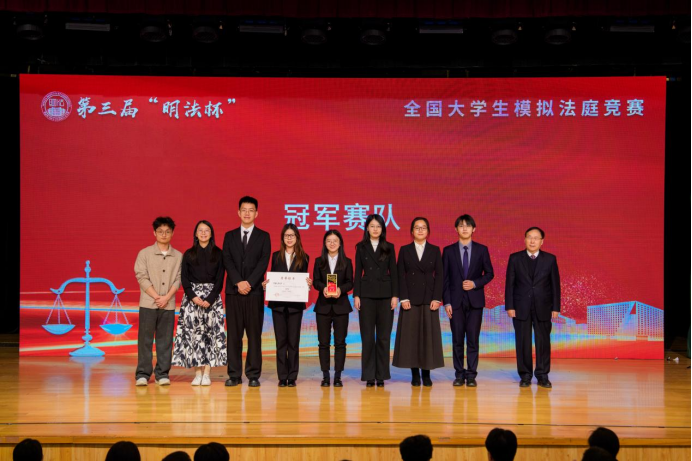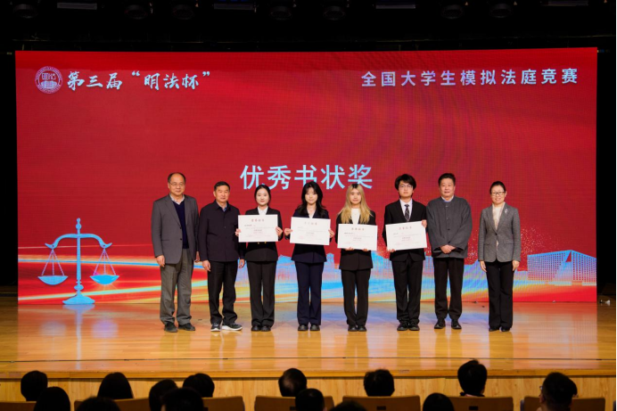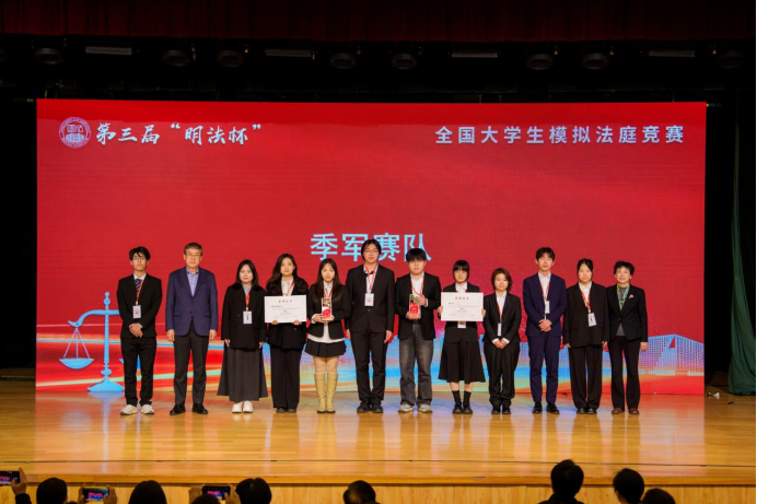 经过四天的激烈角逐,中国人民大学赛队获得第三届“明法杯”全国大学生模拟法庭竞赛冠军,华东政法大学赛队获得亚军,南开大学赛队、中国社会科学院大学赛队获得季军。四川师范大学赛队、北京大学赛队、中南财经政法大学赛队、清华大学赛队获得“优秀书状奖”。吉林大学赛队符雅倩、南京大学赛队张佳琳、上海交通大学赛队夏心雨和武汉大学赛队刘琳博获得“优秀辩手奖”。中国海洋大学赛队、河南财经政法大学赛队、对外经济贸易大学赛队、复旦大学赛队、中央财经大学赛队、中国人民公安大学赛队、中央民族大学赛队、北京理工大学赛队、四川大学赛队、北京师范大学赛队、云南民族大学赛队、中国政法大学赛队、浙江大学赛队和青海民族大学赛队获得“优秀组织奖”。