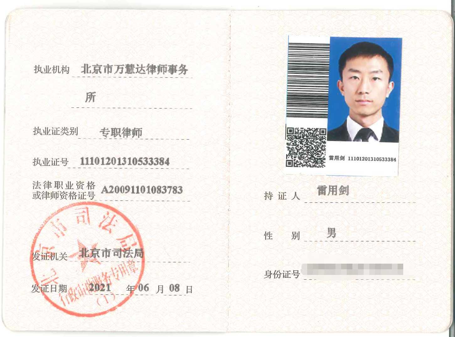 雷用剣北京パートナー / 弁護士Tel:(86-10) 6892-1000E-mail:leiyongjian@wanhuida.com業務分野:商標、著作権、競争法、知的財産訴訟、海外展開使用言語:中国語、英語