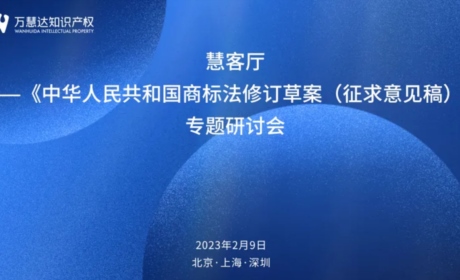 万慧达“慧客厅——《中华人民共和国商标法修订草案(征求意见稿...2023.01.13万慧达“慧客厅——《中华人民共和国商标法修订草案(征求意见稿)》研讨会”成功举行2023年1月13日,国家知识产权局发布《中华人民共和国商标法修订草案(征求意见稿)》面向社会各界公开征求意见。本次意见征集正式拉开了《商标法》第五次修改的序幕,引起了巨大的行业关注。2023.01.13 -