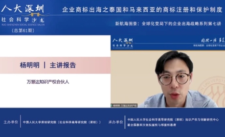 万慧达知识产权合伙人杨明明作为主讲嘉宾分享“泰国和马来西亚的...2025.06.12万慧达知识产权合伙人杨明明作为主讲嘉宾分享“泰国和马来西亚的商标注册和保护制度”2025年6月12日,中国人民大学社会科学高等研究院(深圳)通过知产财经视频号举办线上分享会,旨在帮助企业更好地防范和应对海外知识产权纠纷。2025.06.12 -